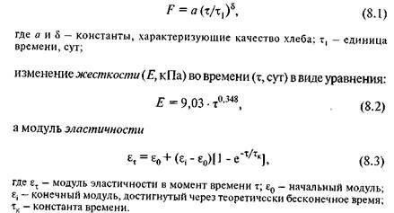 При хранении хлеба наблюдается изменение его свежести, т.е. черствение. Эти изменения являются результатом сложных физико-химических, коллоидных и биохимических процессов — потери влаги (усыхание) и изменений в углеводах и белках (черствение). Для определения динамики этих процессов применяются показатели твердости мякиша (F), жесткости (Е) и модуля эластичности (ет).