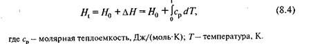 Молярная теплоемкость ср заменяется удельной теплоемкостью су. Тогда, в соответствии с уравнением (8.4), черствение хлеба повышает его удельную теплоемкость и соответственно повышается энтальпия системы.