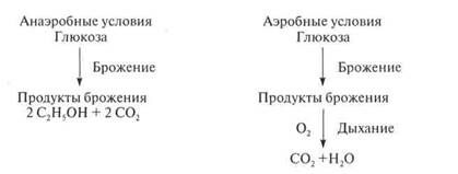 Дрожжевые клетки и молочнокислые бактерии - факультативные анаэробы. Главным клеточным «топливом» при анаэробном получении энергии служат шестиуглеродные сахара, в первую очередь D-глюкоза; при спиртовом брожении, вызываемом дрожжами, пентозы не сбраживаются. Некоторые бактерии способны извлекать энергию, сбраживая пентозы, жирные кислоты или аминокислоты. Среди многих способов сбраживания глюкозы наиболее важную роль играют два тесно связанных между собой — гомоферментативное молочнокислое брожение и спиртовое брожение.