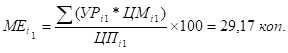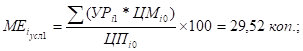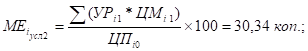 DМЕцп = МЕф – МЕусл2 = 29,17 – 30,34 = –1,17 коп.;