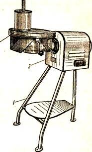 1-трубчатая сварная подставка, 1- конический редуктор, 2- сменные ножевые