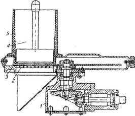 1- редуктор, 2- платформа, 3- съемный резервуар, 4- крышка- решетка, 5- месильные лопасти