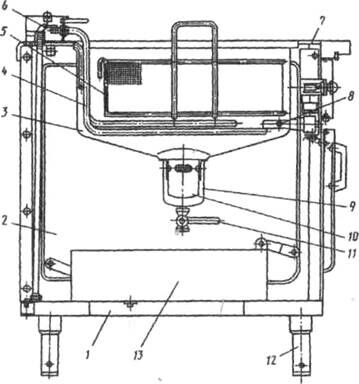10- фильтр, 11- кран, 12 – ножки, 13- сливной бачок