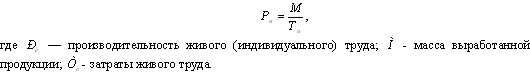Производительность живого (индивидуального) труда выражается через затраты рабочего времени на производство единицы продукции, и рассчитывается по формуле: