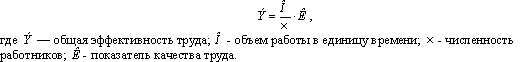 Эффективность труда обеспечивает учет качества труда и необходимость его экономного использования. Для расчета общего показателя эффективности труда можно использовать формулу: