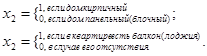 Начиная с III квартала 1996 г. Госкомстат России проводит наблюдение за ценами на первичном и вторичном рынках жилья (раздельно) в территориальных центрах и крупных городах Российской Федерации по трем видам квартир: типовым, улучшение планировки, элитным (на вторичном рынке выделяются, кроме того, квартиры низкого качества). Фиксируются число комнат, материал стен дома, район города. Это дает возможность проводить классификацию регионов РФ, измерять взаимосвязи. При наличии более детальных сведений (этажности, наличия балкона, лоджии, удаленности от станции метро и пр.) по массовым сделкам строятся статистические модели зависимости цен предложения (у) от определяющих факторов (х1, х2,.,.), большинство из которых — фиктивные переменные, т. е. принимают значения 0 или 1. Например,