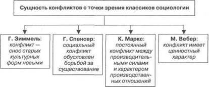 Схема 12.1. Сущность конфликтов с точки зрения классиков социологии