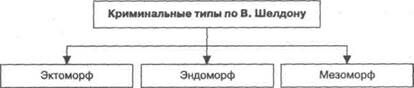 Криминальные типы по В. Шелдону. С позиции биологического подхода исследовал криминальное поведение американский социаль­ный психолог и врач В. Шелдон. В середине XX в., работая в центре реабилитации малолетних преступников, исследовав более 200 юно­шей, он сопоставил виды физической конституции (строения тела), их темпераменты и виды совершенных ими преступлений. Если Ч. Ломб-розо сравнивал филогенетические черты разных периодов человече­ской эволюции, то В. Шелдон сопоставил строение тела и поведение преступников по аналогии с собаками: каждой породе, предназначен­ной для выполнения определенных служебных функций, соответствует определенное строение тела. Он выделил три типа строения тела у лю­дей с соответствующими соматическими, физиологическими и психо­логическими характеристиками.