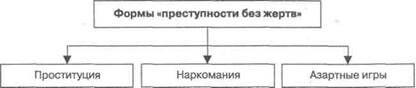 Другой формой девиации, не связанной с тяжкими преступления­ми, является так называемая преступность без жертв. Это такие виды преступлений, как проституция, наркомания, азартные игры. Несмотря на то что общество относится к ним более терпимо, чем к тяжким пре­ступлениям, социологи ищут возможности по их ограничению и сокра­щению.