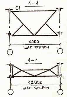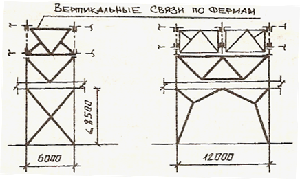 По схеме стальные связи между колоннами подразделяются на крестовые и портальные. Крестовые характерны 6-метровым шагам колонн, портальные – 12-метровым.