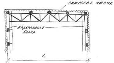 Передача ветровых нагрузок с торцовых стен на колонны и вертикальные связи через конструкции кровли целесообразна только для зданий определенных пролетов и высоты. В большепролетных зданиях более или менее значительной высоты такое использование кровли затрудняет крепление стропильных конструкций к колоннам, усложняет конструкции, обеспечивающие устойчивость покрытий, а в ряде случаев и вообще не может быть осуществлено без нарушения целостности кровли, прочности креплений ее к стропильным конструкциям.