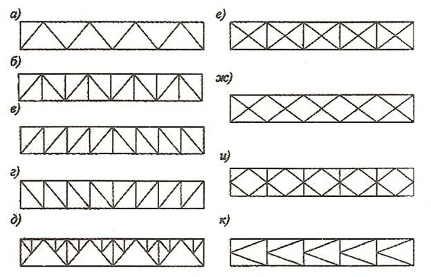 ж) перекрестная; и) ромбическая; к) полураскосная