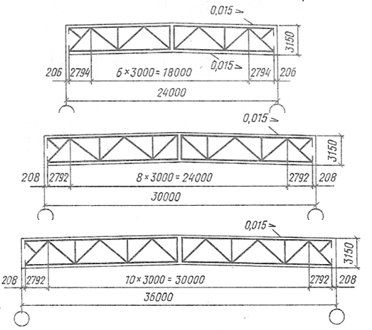 Типовые унифицированные фермы могут использоваться как в бескрановых зданиях, так и в зданиях с мостовыми опорными кранами.