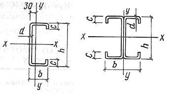Рис. 15. Сечения стальных 6-метровых прогонов покрытия