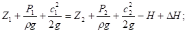 Если между сечениями 1 и 2 потоку сообщается энергия нагнетателем, то уравнения 2.4 и 2.5 приобретают вид: