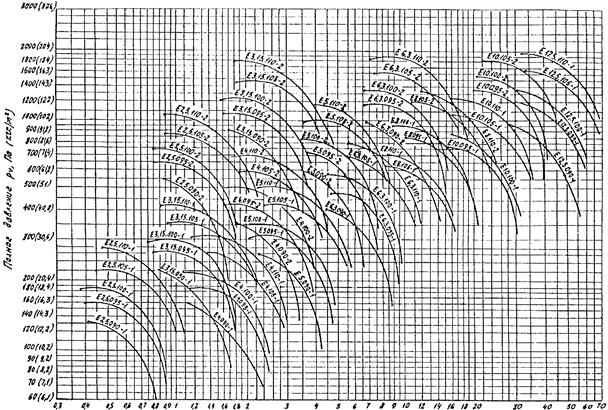Рис. 5.3 Сводная характеристика вентиляторов типа В.Ц4-75