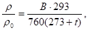 где В – фактическое барометрическое давление (мм.рт.ст.); t – температура в °С; r0=1.2 кг/м3.
