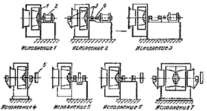 Существует несколько различных схем соединения вентилятора с электродвигателем - это так называемые конструктивные исполнения (рис. 9.2).