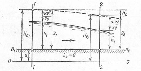 где первый член справа пред­ставляет  потенциальную часть удельной энергии сечения ЭП=Н, а второй - кинетичес­кую Эк = αQ2/(22).