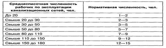 Нормативы численности рабочих по обслуживанию водоотводящей сети