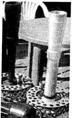 Эжектор (рис. 7) состоит из корпуса, в котором монтируются сопла напорной трубы рабочей жидкости, всасывающего патрубка, вакуумной камеры, которая служит для смешения рабочей жидкости и осадка, и трубопровода для транспортировки гидросмеси в цистерну. Эжектор позволяет откачивать жидкость из колодцев глубиной до 30 м на расстояние до 100 м с расходом до 2 м3/мин.