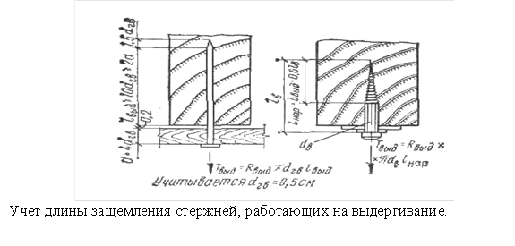 В деревянных конструкциях (для временных сооружений) Rвыд,. При определении Твыд расчетный диаметр гвоздя принимают не более 5 мм, даже в случае использования гвоздей большей толщины.