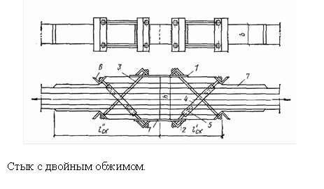 Стык с двойным обжатием является натяжным сборно-разборным соединением, создающим начальную плотность и позволяющим поддерживать ее в дальнейшем в условиях эксплуатации (если произойдет некоторая усушка соединяемых элементов).