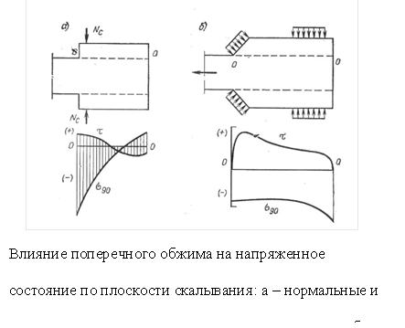 Анализ испытаний растянутых стыков показывает, что сила, обжимающая элемент у начала плоскости разрушения при скалывании, противодействуя растягивающим напряжениям, одновременно создает дополнительные напряжения сдвига и тем самым увеличивает их концентрацию в опасной зоне. При создании на противоположном конце плоскости скалывания дополнительной силы обжима поперек волокон (как это имеет место в рассматриваемом стыке) напряжения сдвига выравниваются, уменьшаются их концентрация и возможность возникновения