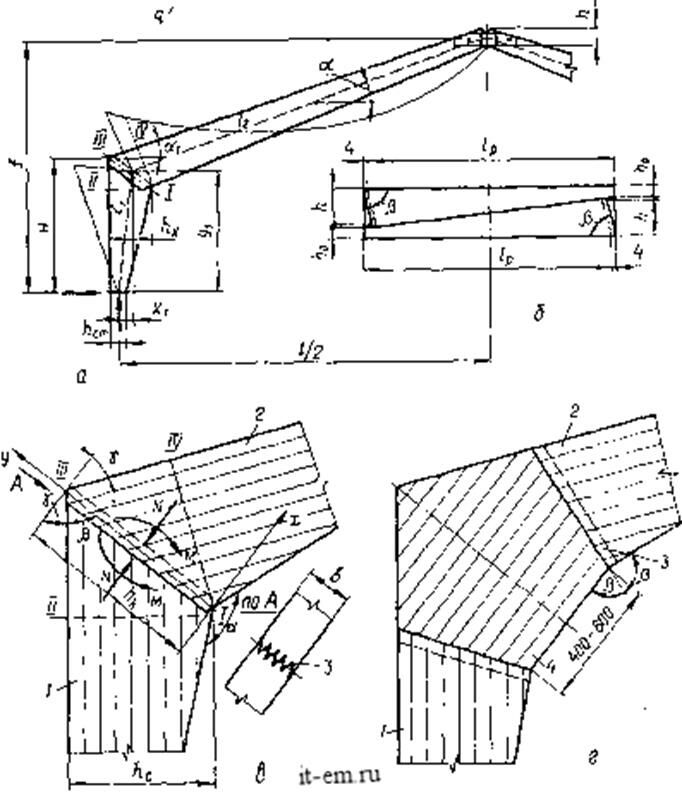 Расчет трехшарнирных деревянных рам производят простыми приемами математической статики.