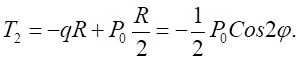 Кольцевое усилие на единицу длины меридиана определится с учетом нормальной составляющей нагрузки в уровне кольцевого сечения q = P0Cos2j