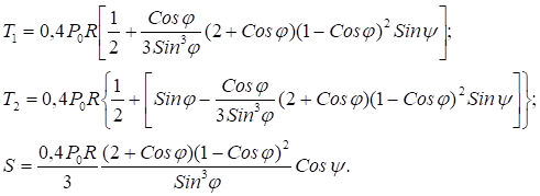 Определение усилий от снеговой нагрузки. Интенсивность снеговой нагрузки по поверхности купола обычно принимают по закону косинуса Р = Р0Cоsj, где Р0 — равномерно распределенная нагрузка по проекции поверхности на горизонтальную плоскость.