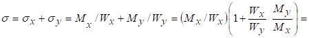 s = (Mx/Wx) (1 + 7tgα) £ Rygc,