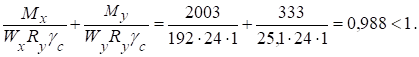 где gc = 0,95 – коэффициент условий работы при проверке общей устойчивости (см. табл. 1.3);