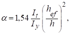 α = 1,54(It/Iy) (hef/h)2 = 1,54 (10,22 / 262) (600 / 24,9)2 = 34,88;