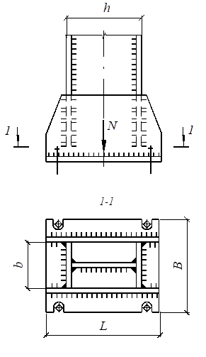 Размеры плиты (ширина B и длина L) назначаются по требуемой площади Af, увязываются с контуром колонны (свесы опорной плиты должны быть не менее 40 мм) и согласуются с сортаментом (рис. 4.14).
