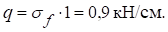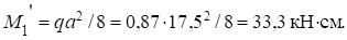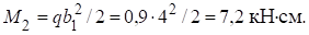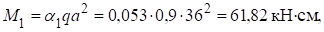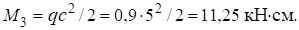 M1׳ = M1 – M3 = q(α1a2 – 0,5c2) = 0,9 (0,053 ∙ 362 – 0,5 ∙ 52) = 50,57 кН∙см.