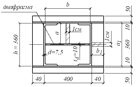 b = 400 – 2d = 400 – 2 × 7,5 = 385 мм; а = 360 мм; b/а = 385 / 360 = 1,07.