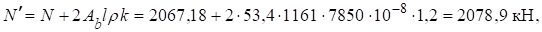 Определяем расчетное усилие в колонне на уровне базы с учетом собственного веса колонны: