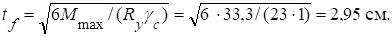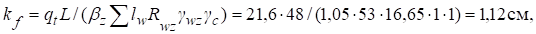 kf = Qr/[2βz(c – 1)Rwzγwzγc] = 108 / [2 · 1,05 (5 – 1) 16,65 ∙ 1 · 1] = 0,77 см.