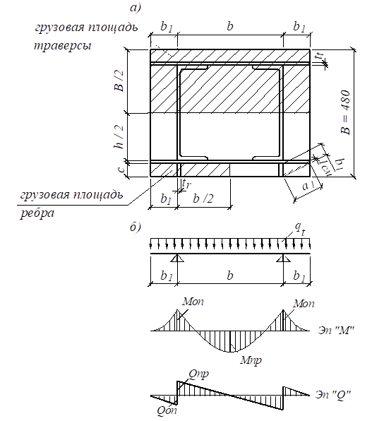 Рис. 4.16. К расчету траверсы и ребра усиления плиты