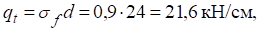 Требуемый катет горизонтальных швов для передачи усилия (Nt = qtL) от одной траверсы на плиту