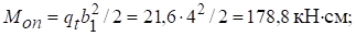 Mr = qrc2/2 = 21,6 ∙ 52 / 2 = 270 кН·см.