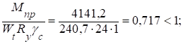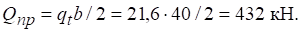 Mпр = qtb2/8 – Mоп = 21,6 ∙ 402 / 8 – 178,8 = 4141,2 кН·м;