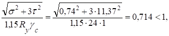 где σ = Моп/Wt = 178,8 / 240,7 = 0,74 кН/см2;