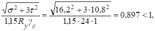 Rb,loc = αφbRb = 1 ∙ 1,2 ∙ 7,5 = 9 МПа = 0,9 кН/см2,