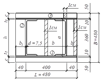 Для центрально-сжатой колонны опорная плита должна быть близкой к квадрату (рекомендуемое соотношение сторон L/В ≤ 1,2). Принимаем квадратную плиту с размерами В = L = 480 мм.