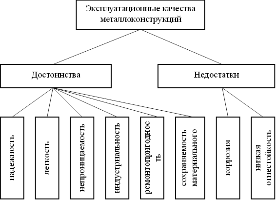 Рис. 1.1. Достоинства и недостатки металлических конструкций