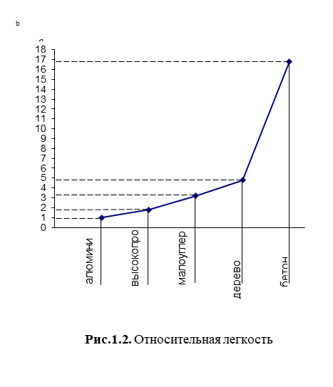 На рис. 1.2 приведена сравнительная легкость конструкции из различных материалов (коэффициент с для алюминиевого сплава Д16Т принят за единицу).