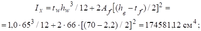 где hf = hw + tf = 65 + 2,2 = 67,2 см – расстояние между осями полок;