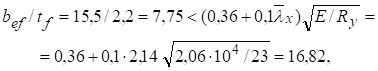 Местная устойчивость полки колонны обеспечивается за счет назначения соответствующего отношения расчетной ширины свеса bef (расстояние от грани стенки до края полки) к ее толщине tf.